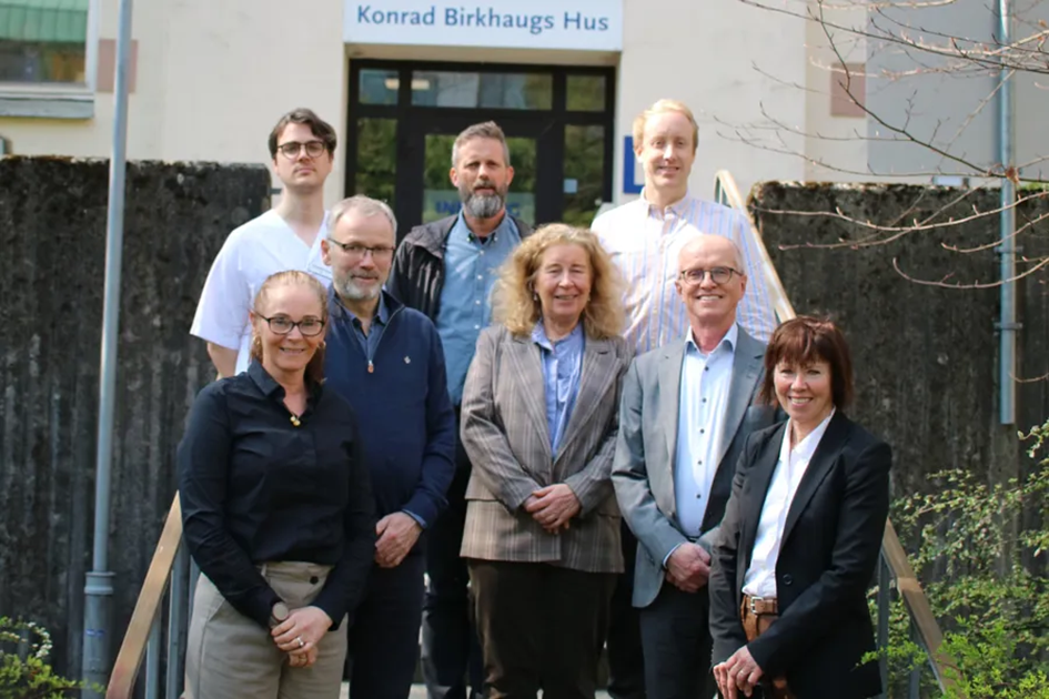 Bak fra venstre: Kristoffer Enge vaktlege, stabsleder i OFFB, Kim Sviland, og seksjonsleder/overlege Radio Medico, Jon Magnus Haga. Foran fra venstre: Leder plan og beredskap i OFFB, Ann Christin Auestad, daglig leder i OFFB, Ole Jacob Haug, vaktlege Leni Johannesen, Klinikkdirektør Alf Henrik Andreassen og vaktlege Marit Grønning.